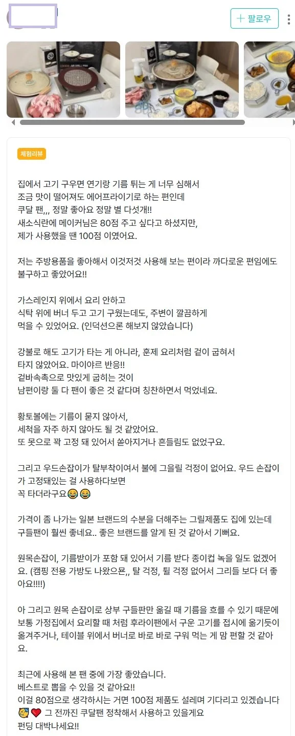 쿠달 에어그릴팬의 기술력은 실제 사용자들의 경험을 통해 입증되고 있습니다.