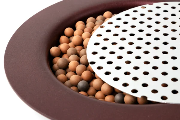 지름 10mm의 황토볼은 단순한 충전재가 아닌, 고기의 풍미를 결정짓는 핵심 요소입니다. 황토볼은 열을 고르게 전달할 뿐 아니라, 고기를 굽는 과정에서 발생하는 냄새를 흡수하는 역할도 합니다. 이는 고기 안쪽 깊은 곳까지 열과 향을 더해 풍미를 극대화하면서도, 외부로 새어나가는 냄새를 최소화하는 특별한 효과를 만들어냅니다.